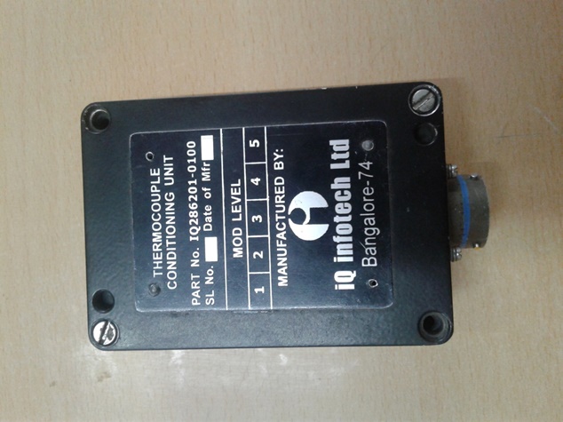 The Thermocouple conditioning unit is completely analogue circuit that provides analogue voltage, which represents the engine turbine gas temperatures to the data acquisition system. The unit accepts signals from two ‘K’ type (Chromel/Alumel) thermocouples and provides independent output voltage in the range of 0 to 10v representing the temperature range 0 to 1000°C, which are fed into DAU for processing.